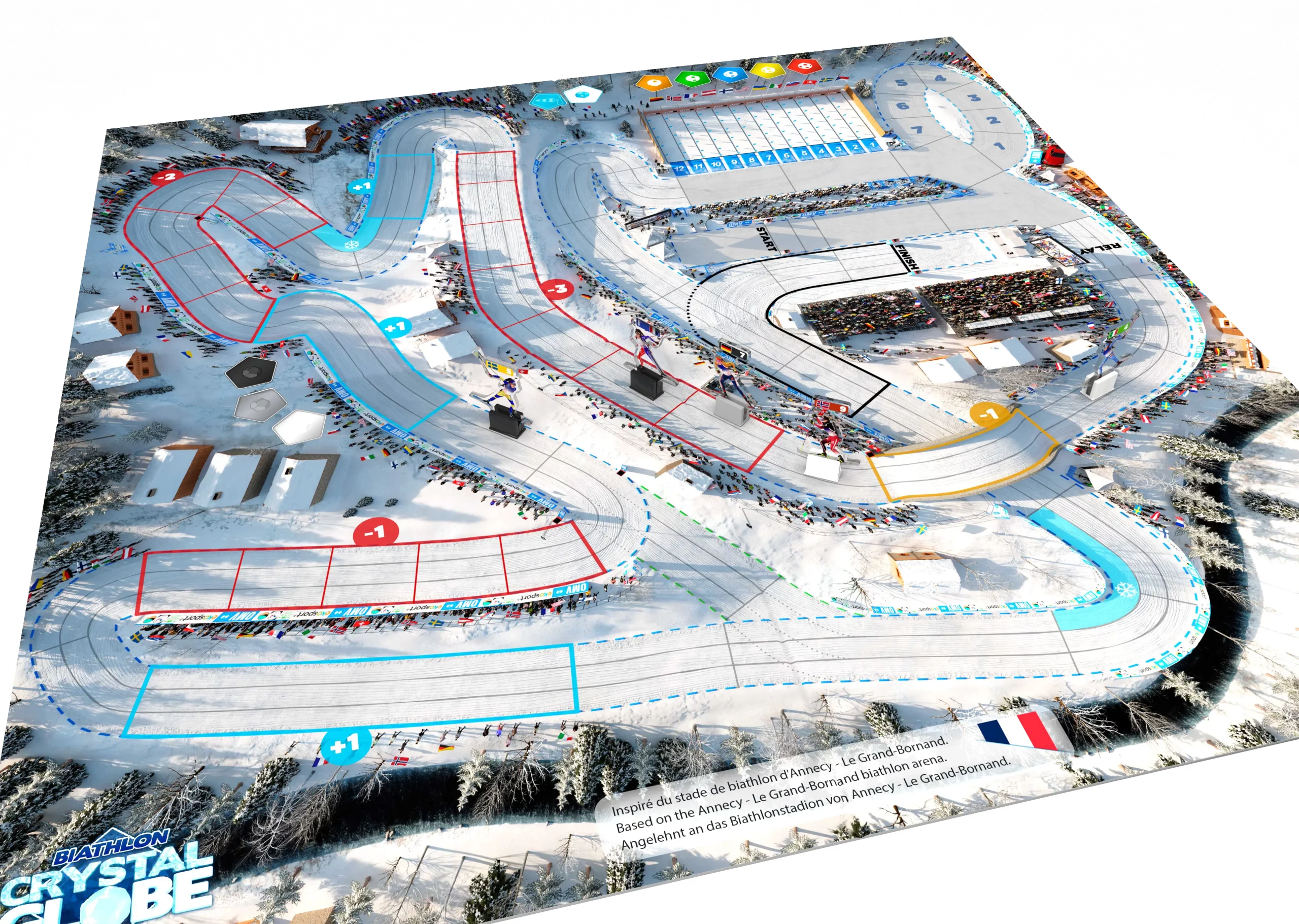 Cette édition spéciale comprend 2 pistes de biathlon : notre piste d’entraînement sur le Multivers Stadium et la piste Annecy – Le Grand-Bornand inspirée de la célèbre étape française de Coupe du Monde. Créées en technologie 3D, ces 2 pistes proposent un plateau de jeu exceptionnel avec un rendu précis du relief et une restitution parfaite du paysage.